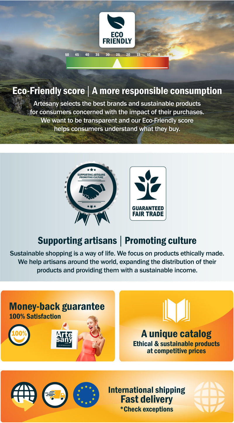 View full detailsOur MAÏZA bracelet is an authentic and intricate design that blends handweaving with the organic appeal of upcycled vegetable fibers. Handcrafted...