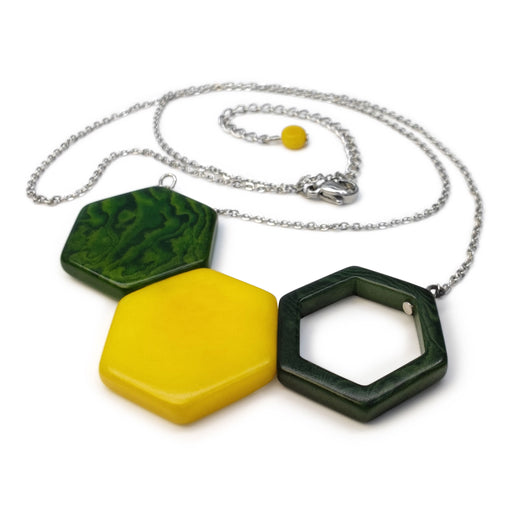 View full detailsOur TRIPTYCH necklace is handcrafted by experienced Colombian artisans using tagua (vegetable ivory), a rock-hard seed from a palm tree endemic t...