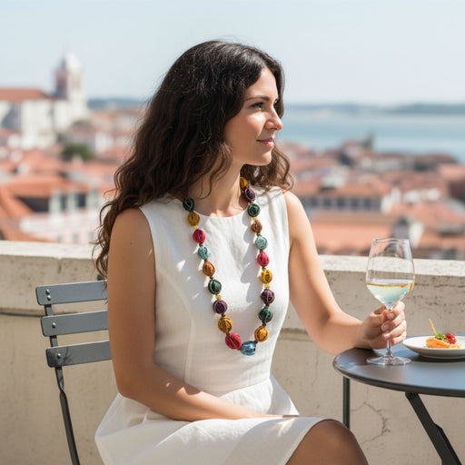 View full detailsIf you appreciate a distinctive style, natural materials, and vibrant colors, our NARANJITA necklace is for you! Long and adjustable, it's handcr...