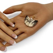 MATERIALS: Tagua (vegetable ivory) with a polished finish. The dark, brown areas are part of the seed's natural skin, left untouched to highlight these earrings' unique organic design. The top is 24K gold-plated pewter with a protective cataphoretic lacquer finish, and cultured pearls. This jewelry is gold-plated, not solid gold. Gold plating offers the look of fine jewelry at an affordable price, but it can wear off over time, especially with daily or intensive use. This type of jewelry is intended for occasional wear to highlight your outfit. For a gold-looking piece to wear every day, solid gold is the better option. To wear and enjoy your piece for a longer time, please follow the specific care instructions that you will find further down in the Specifications and Sizes section.