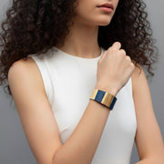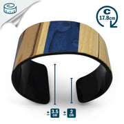 Elevate your look, casual or chic, with our unisex and lightweight ARBOREAL bracelet, a blend of versatility and urban style. Its asymmetrical design with lively colors makes it a truly distinctive piece. The bracelet is handmade with a fine technique inspired by marquetry. Crafted with reinforced wood veneer for strength and a flexible thermoformed acrylic interior that protects it from the skin's moisture, this bracelet is built to last. A smooth beeswax finish provides durable protection. For the best fit, wear the widest side of the bracelet on the pinky side of your wrist bone. It is handmade by a couple of artisans from Tenjo, a Colombian dormitory town near Bogota. While the local economy is based on agriculture, this couple have pursued a career in handcrafts, creating outstanding pieces in their own workshop.