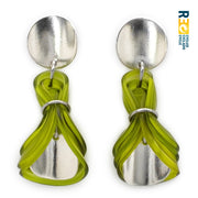 Our ECOGLOW earrings are an ingenious design crafted from recycled and dyed plastic liners obtained from the interior of beer and soda bottle caps. This brilliant transformation of often-discarded and underestimated materials makes these earrings an original and eco-friendly conversation piece. The structure and posts of these earrings are made of 925 sterling silver, complemented by small stainless steel jump rings to reinforce the design. Each pair is handmade by a young and creative artisan from Bogotá, Colombia's capital, who focuses on ethical and environmentally friendly designs, prioritizing eco-responsibility and sustainability. When you choose these earrings, you're not just wearing a beautiful accessory; you're also making a meaningful statement about your commitment to sustainable design and ethical craftsmanship.
