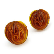 Our ECOTOPIA earrings are an ingenious design crafted from recycled and dyed plastic liners obtained from the interior of beer and soda bottle caps. This brilliant transformation of often-discarded and underestimated materials makes these earrings an original and eco-friendly conversation piece. The structure and posts of these earrings are made of 925 sterling silver. Each pair is handmade by a young and creative artisan from Bogotá, Colombia's capital, who focuses on ethical and environmentally friendly designs, prioritizing eco-responsibility and sustainability. When you choose these earrings, you're not just wearing a beautiful accessory; you're also making a meaningful statement about your commitment to sustainable design and ethical craftsmanship.