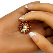 Our ECOSOL earrings are an ingenious design crafted from recycled and dyed plastic liners obtained from the interior of beer and soda bottle caps. This brilliant transformation of often-discarded and underestimated materials makes these earrings an original and eco-friendly conversation piece. The structure and posts of these earrings are made of 925 sterling silver. Additionally, the golden accents on the front are made from 24K gold-plated silver. Each pair is handmade by a young and creative artisan from Bogotá, Colombia's capital, who focuses on ethical and environmentally friendly designs, prioritizing eco-responsibility and sustainability. When you choose these earrings, you're not just wearing a beautiful accessory; you're also making a meaningful statement about your commitment to sustainable design and ethical craftsmanship.