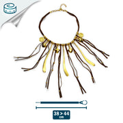 Created and handcrafted by Colombian jewelers, our SUÉ necklace pays homage to pre-Columbian cultures and their intricate goldwork. This modern design blends long leather cords and metal contours with pre-Columbian inspired charms. Discover motifs like the anchors of the Tairona and the sun god (Sué) of the Muisca, civilizations that thrived in ancient Colombian territory. This inspiration comes directly from the prestigious Museum of Gold in Bogotá, Colombia's capital, renowned for housing the world's most extensive pre-Columbian gold collection. This necklace is crafted in 24K gold-plated pewter with a protective cataphoretic lacquer finish for higher durability and a radiant touch, perfectly complemented by its soft leather cords.