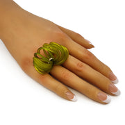 Our ECOBLOOM ring is an ingenious design crafted from recycled and dyed plastic liners obtained from the interior of beer and soda bottle caps. This brilliant transformation of often-discarded and underestimated materials makes this ring an original and eco-friendly conversation piece. Made of 925 sterling silver, the adjustable band fits any finger. Each ring is handmade by a young and creative artisan from Bogotá, Colombia's capital, who focuses on ethical and environmentally friendly designs, prioritizing eco-responsibility and sustainability. When you choose this ring, you're not just wearing a beautiful accessory; you're also making a meaningful statement about your commitment to sustainable design and ethical craftsmanship.