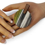 Designed to turn heads and draw compliments, our WOODIE SOL earrings are a blend of bold design and durable comfort. Despite their generous size, they are incredibly lightweight while featuring three layers of reinforced plywood for enhanced support and strength. A smooth beeswax finish provides lasting protection, and a range of striking color combinations is available to match your outfit or to add a vibrant pop of color to it. They are handcrafted by a couple of dedicated artisans from Tenjo, a Colombian dormitory town near Bogota. While the local economy is mainly based on horticulture and livestock-breeding, these young artisans have pursued a career in handcrafts, pouring their imagination into every piece they create in their own workshop.