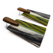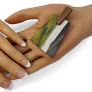 Designed to turn heads and draw compliments, our WOODIE TRAPEZE earrings are a blend of bold design and durable comfort. Despite their generous size, they are incredibly lightweight while featuring three layers of reinforced plywood for enhanced support and strength. A smooth beeswax finish provides lasting protection, and a range of striking color combinations is available to match your outfit or to add a vibrant pop of color to it. They are handcrafted by a couple of dedicated artisans from Tenjo, a Colombian dormitory town near Bogota. While the local economy is mainly based on horticulture and livestock-breeding, these young artisans have pursued a career in handcrafts, pouring their imagination into every piece they create in their own workshop.