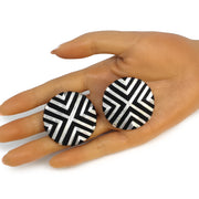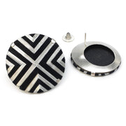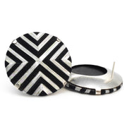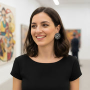 Our FILUM earrings gracefully integrate handweaving techniques and abstract art. What began as an exploration of color, geometry, and texture, rapidly evolved to an attractive threadwork design that will catch attention. These pieces are handcrafted with threads, intricately woven on wooden bases, while the elegance of 925 sterling silver frames and posts provide a refined final touch. Each pair is meticulously crafted by a socially-focused female artisan who trains and employs people facing social barriers, helping them regain purpose and productivity in their community through handcrafts. She based her atelier in Pasto, a southern Colombian city known for its vibrant cultural heritage and carnival; the UNESCO-recognized "Carnaval de negros y blancos" (Black and White Carnival) celebrated every January.