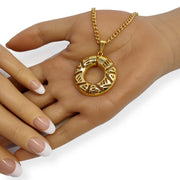 Our ELDORADO ARETERA necklace is handcrafted by Colombian artisans with a special affinity for pre-Columbian cultures, their symbolism, and artistry. The form of this pendant is inspired by pre-Columbian earrings, which held profound meaning as cultural and spiritual expressions and were key elements of body ornamentation. The name ARETERA also means "earrings" in Spanish, particularly in the context of Pre-Columbian jewelry. This design is attributed to the Zenú or Sinú culture, a civilization that thrived in ancient Colombia. It was inspired by artifacts at the Museum of Gold in Bogota, Colombia, home to the world's largest collection of pre-Columbian goldwork. This piece is crafted in 24K gold-plated pewter with a protective cataphoretic lacquer finish for higher durability and radiance.