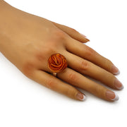 Our ECOTOPIA ring is an ingenious design crafted from recycled and dyed plastic liners obtained from the interior of beer and soda bottle caps. This brilliant transformation of often-discarded and underestimated materials makes this ring an original and eco-friendly conversation piece. The ring's 925 sterling silver structure has an adjustable band that fits any finger. Each ring is handmade by a young and creative artisan from Bogotá, Colombia's capital, who focuses on ethical and environmentally friendly designs, prioritizing eco-responsibility and sustainability. When you choose this ring, you're not just wearing a beautiful accessory; you're also making a meaningful statement about your commitment to sustainable design and ethical craftsmanship.