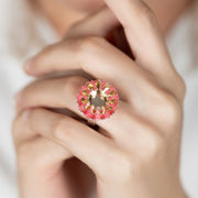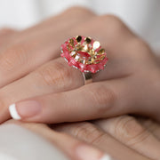 Our ECOSOL ring is an ingenious design crafted from recycled and dyed plastic liners obtained from the interior of beer and soda bottle caps. This brilliant transformation of often-discarded and underestimated materials makes this ring an original and eco-friendly conversation piece. The ring's 925 sterling silver structure has an adjustable band that fits any finger. Additionally, the golden accents on the front are made from 24K gold-plated silver. Each ring is handmade by a young and creative artisan from Bogotá, Colombia's capital, who focuses on ethical and environmentally friendly designs, prioritizing eco-responsibility and sustainability. When you choose this ring, you're not just wearing a beautiful accessory; you're also making a meaningful statement about your commitment to sustainable design and ethical craftsmanship.