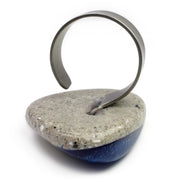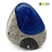Is it time for a new ring with an inspiring story and a distinctive aesthetic? We got you covered! The creative design of our GRANITA ring highlights recycled dark and light crushed cement (dark and grey areas) and aluminum powder (shiny details in the blue area) embedded in resin, an artistic way to transform discarded materials. The ring is completed with an adjustable and hypoallergenic stainless steel band, meticulously bonded using a specialized, high-strength technique for a secure fit. To adjust the size, simply hold the band with one hand and gently pull or push the open end with the other. This ring is handmade by a couple of artisans from Tenjo, a Colombian commuter town near Bogota. While the local economy is based on agriculture, this couple have pursued a career in handcrafts, creating brilliant pieces in their own workshop.
