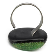Is it time for a new ring with an inspiring story and a distinctive aesthetic? We got you covered! The creative design of our NATÜA ring highlights recovered wood (central inlay) and bronze powder (shiny details in the green area) embedded in resin, an artistic way to transform discarded materials. The ring is completed with an adjustable and hypoallergenic stainless steel band, meticulously bonded using a specialized, high-strength technique for a secure fit. To adjust the size, simply hold the band with one hand and gently pull or push the open end with the other. This ring is handmade by a couple of artisans from Tenjo, a Colombian commuter town near Bogota. While the local economy is based on agriculture, this couple have pursued a career in handcrafts, creating brilliant pieces in their own workshop.
