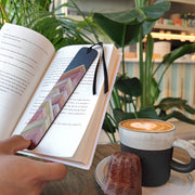 To all book lovers! We present our dark wood EARTH bookmark, a lovely and exclusive design from our Four Elements Collection. Handcrafted in Colombia on treated wood, it is adorned with the fascinating tamo technique. This ancestral art transforms the stalks of wheat and barley to veneer wood surfaces with highly detailed patterns. The process includes boiling, dyeing, drying, and flattening the stalks into fine sheets. These sheets are then cut into very thin, uniform strands, which are meticulously applied, one by one, onto the wood surface. It is a very fine technique that demands great patience, precision, and dedication. Our artisans have preserved this tradition for generations, keeping alive an art form typical of their department, Nariño, in southwestern Colombia, a place of great cultural richness ranging from handcrafts with various natural fibers to the vibrant "Carnaval de Negros y Blancos" (Black and White Carnival), recognized by UNESCO and celebrated every January.