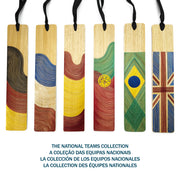 To all book lovers! We present our PORTUGAL bookmark, an exclusive design of our National Teams Collection. Handcrafted in Colombia on treated wood, it is adorned with the fascinating tamo technique. This ancestral art transforms the stalks of wheat and barley to veneer wood surfaces with highly detailed patterns. The process includes boiling, dyeing, drying, and flattening the stalks into fine sheets. These sheets are then cut into very thin, uniform strands, which are meticulously applied, one by one, onto the wood surface. It is a very fine technique that demands great patience, precision, and dedication. Our artisans have preserved this tradition for generations, keeping alive an art form typical of their department, Nariño, in southwestern Colombia, a place of great cultural richness ranging from handcrafts with various natural fibers to the vibrant "Carnaval de Negros y Blancos" (Black and White Carnival), recognized by UNESCO and celebrated every January.