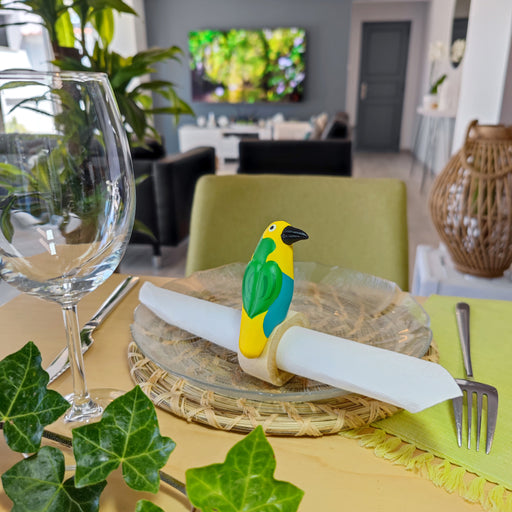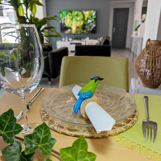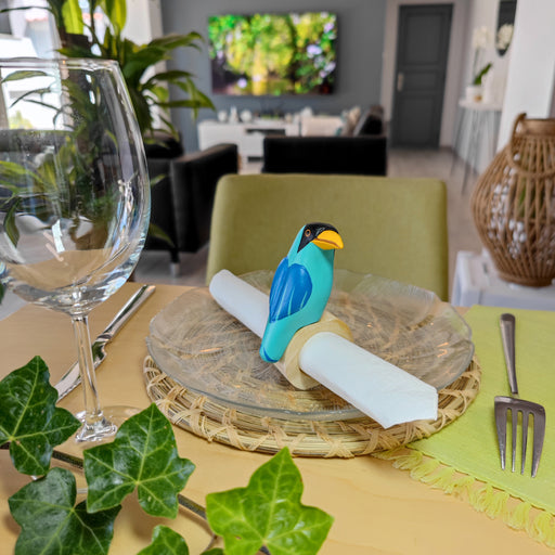 ANILLO DE SERVILLETA DECORATIVO - Tangara multicolor - Madera tallada y pintada a mano