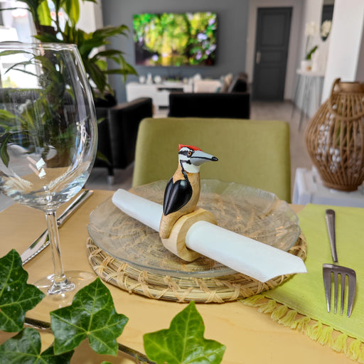 Ver todos los detallesTallado y pintado a mano por artesanos colombianos, nuestro anillo de servilleta de madera PÁJARO CARPINTERO es un tributo artístico a la asombros...