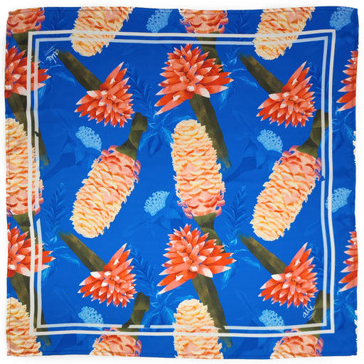 Enveloppez-vous de l'énergie vibrante de la Colombie avec ce foulard exquis. Conçu par l'artiste, l'imprimé original met en vedette l'étonnant Gin...