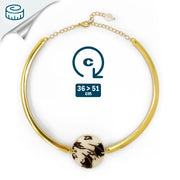 MATERIALS: Tagua (vegetable ivory) with a polished finish. The dark, brown areas are part of the seed's natural skin, left untouched to highlight this necklace's unique organic beauty. The collar is 24K gold-plated pewter with a protective cataphoretic lacquer finish. This jewelry is gold-plated, not solid gold. Gold plating offers the look of fine jewelry at an affordable price, but it can wear off over time, especially with daily or intensive use. This type of jewelry is intended for occasional wear to highlight your outfit. For a gold-looking piece to wear every day, solid gold is the better option. To wear and enjoy your piece for a longer time, please follow the specific care instructions provided below.