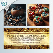 Design inspirado nas culturas e na ourivesaria pré-colombianas.