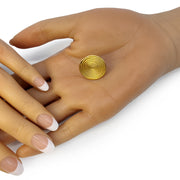 Os nossos brincos CYCLO são desenhados e feitos à mão por artesãos colombianos, que nutrem uma afinidade especial pelas culturas pré-colombianas e a sua arte. Este motivo em espiral, uma forma muito presente na natureza, era conhecido como a Espiral da Vida por muitas culturas pré-colombianas, representando uma visão cíclica da vida, da morte e do renascimento. Este design foi inspirado em artefactos pré-colombianos expostos no Museu do Ouro em Bogotá, capital da Colômbia, que alberga a maior coleção mundial de ourivesaria pré-colombiana. Estes brincos são cuidadosamente criados em estanho banhado a ouro de 24 quilates, com um acabamento protetor de laca cataforética para maior durabilidade e um elegante toque luminoso.