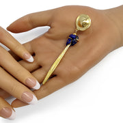 Banhados a ouro de 24 quilates (camada < 3µm) e pedras de lápis-lazúli.