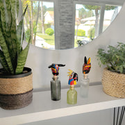 A nossa rolha de garrafa ARARA é uma magnífica embaixadora do vibrante Carnaval de Barranquilla, uma cidade portuária na costa caribenha da Colômbia. Foi inteiramente concebida, esculpida e pintada à mão por artesãos colombianos em madeira. Inspira-se diretamente nas máscaras e no folclore deste carnaval, uma tradição artística celebrada todos os anos em fevereiro e reconhecida pela UNESCO como Património Cultural da Humanidade. Os nossos artesãos dedicam décadas à arte do carnaval, transformando o seu trabalho num verdadeiro legado regional. Cada peça é revestida com um verniz impermeável para maior durabilidade e está firmemente fixada a uma rolha sintética cónica, de qualidade alimentar, higiénica, duradoura e fácil de lavar. O seu design divertido e versátil torna-a perfeita para a sua garrafa de vinho ou água em reuniões com a família e amigos, para guardar azeite e vinagre na sua cozinha, ou simplesmente como um adorno único para qualquer garrafa decorativa na sua casa. Explore toda a coleção e apaixone-se pelo design que todos os seus convidados vão admirar.